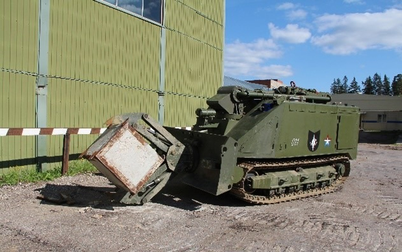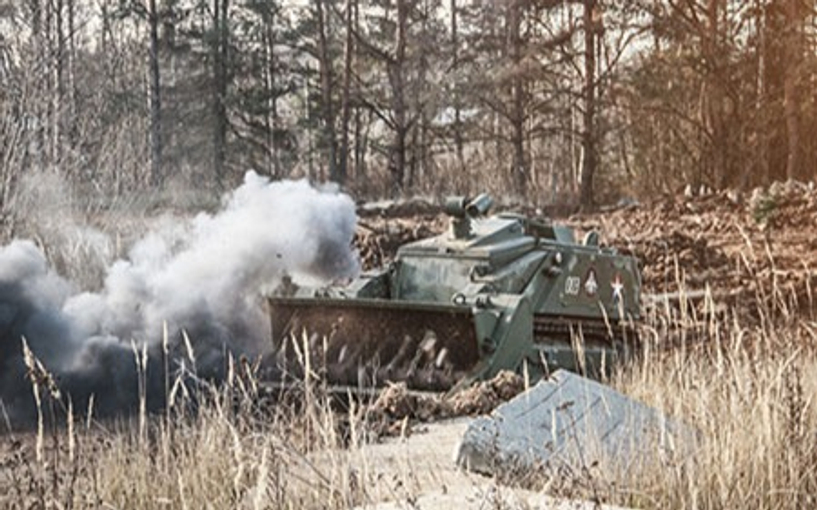 Гусеничный самоходный радиоуправляемый минный трал предназначен для разминирования городских участков, а также горных и мелколесистых территорий.